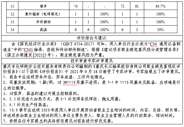重庆长江轴承股份有限公司职业病危害现状评价公示表