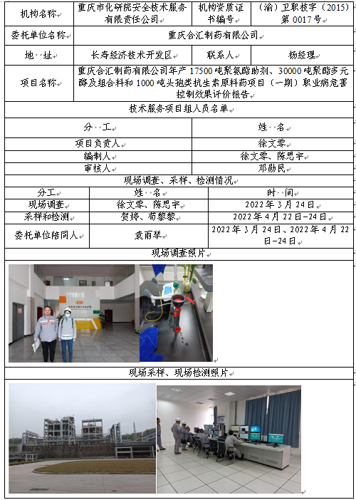 控评公示-重庆合汇制药有限公司(一期)职业病危害控制效果评价报告