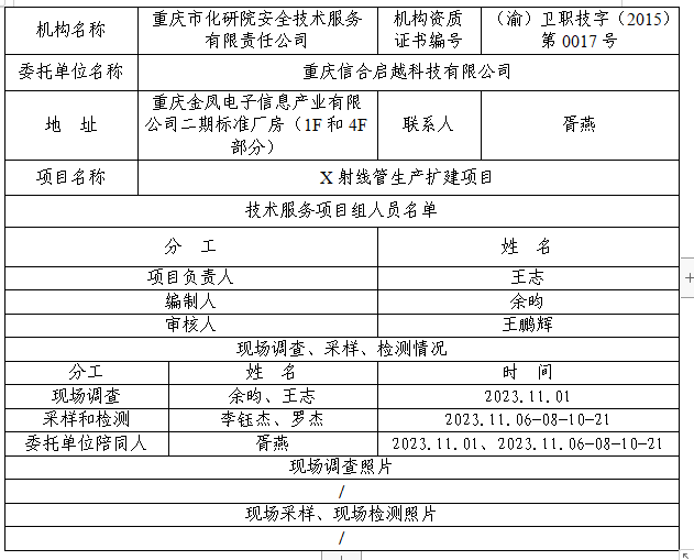 重庆信合启越科技有限公司X射线管生产扩建项目