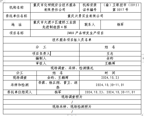重庆兴勇实业有限公司JMRH产品研发生产项目