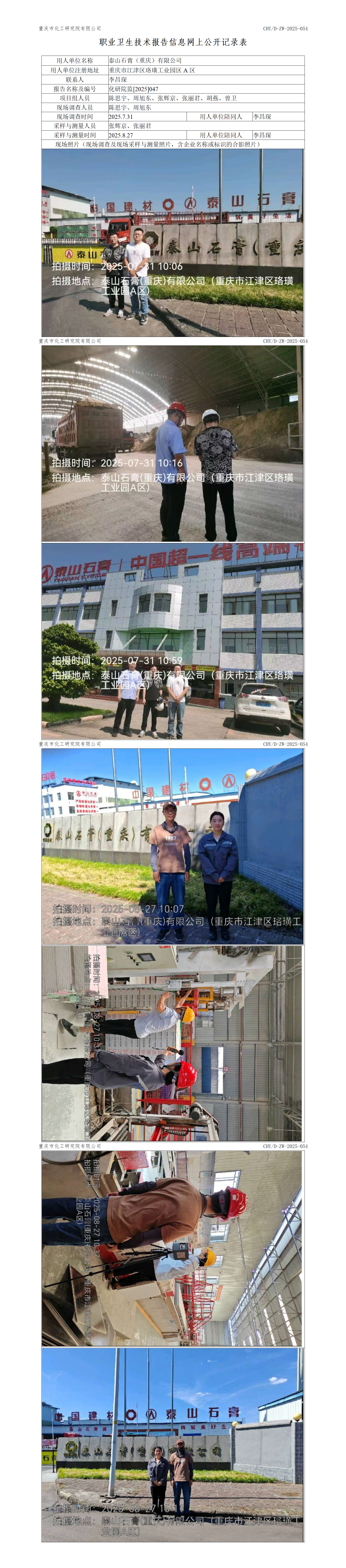 泰山石膏(重庆)有限公司职业卫生定期检测