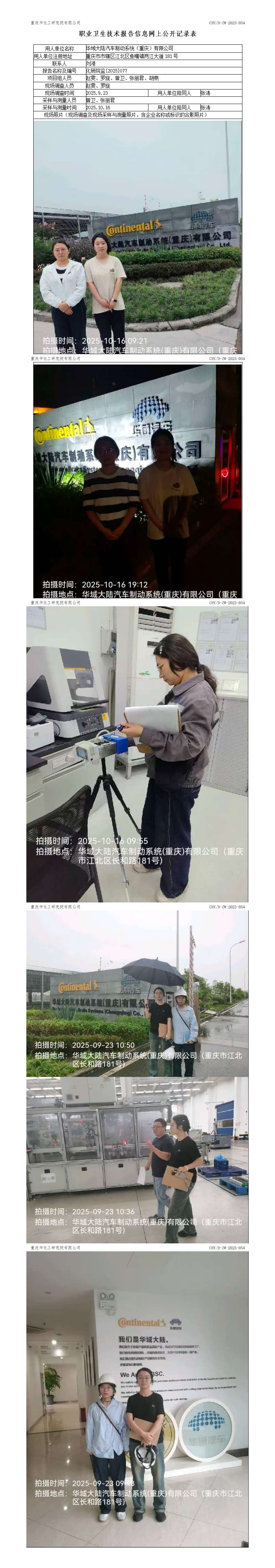 华域大陆汽车制动系统(重庆)有限公司定期检测