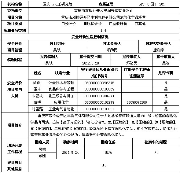 重庆市双桥经开区丰润气体有限公司危险化学品经营现状评价