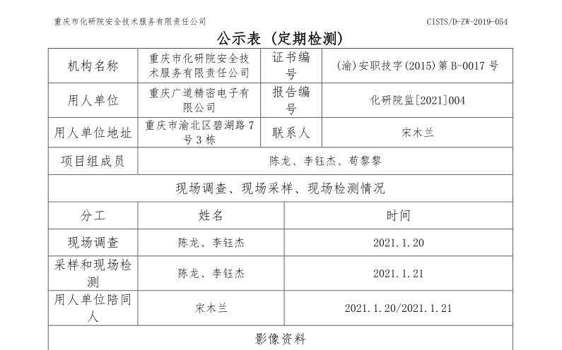 2021年2月重庆广道精密电子有限公司定期检测