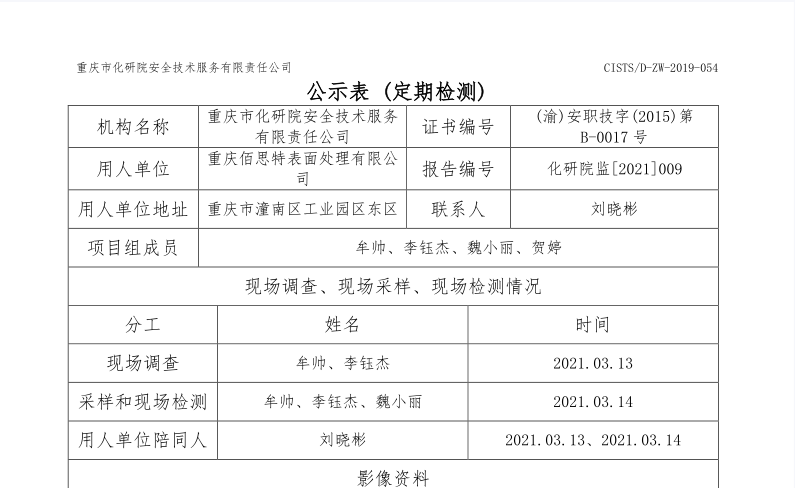 2021年3月重庆佰思特表面处理有限公司定期检测