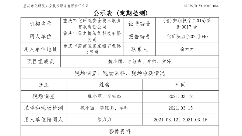 2021年3月重庆市昱之博智能科技有限公司定期检测
