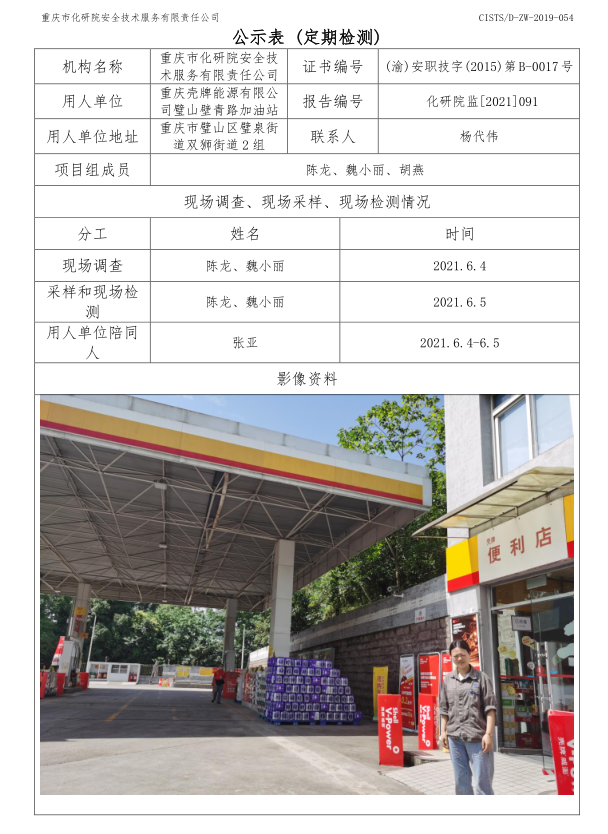 2021年6月重庆壳牌能源有限公司璧山壁青路加油站定期检测