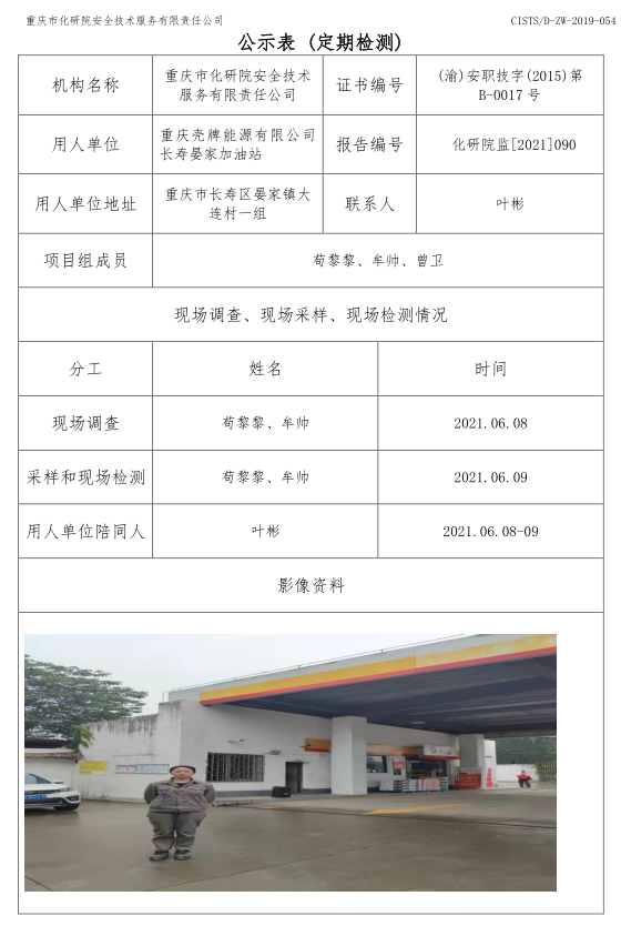 2021年6月重庆壳牌能源有限公司长寿晏家加油站定期检测