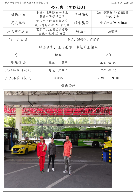 2021年6月重庆中节能清洁能源有限公司谢家湾CNG加气站定期检测