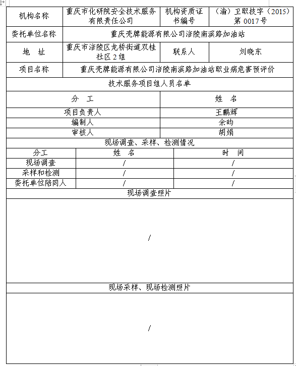 重庆壳牌能源有限公司涪陵南滨路加油站职业病危害预评价公示表