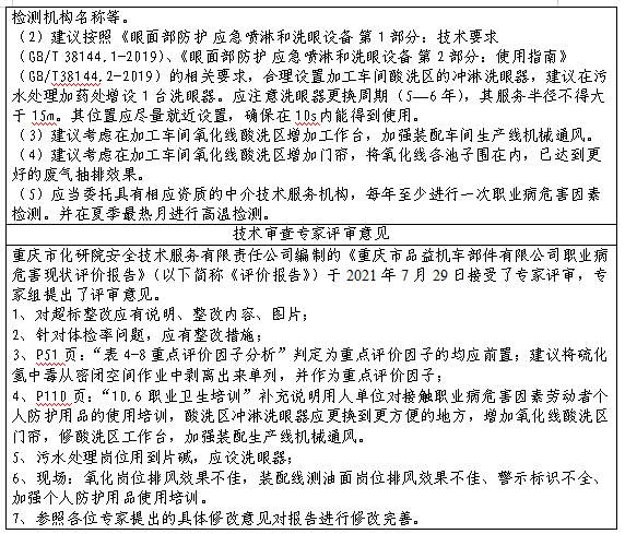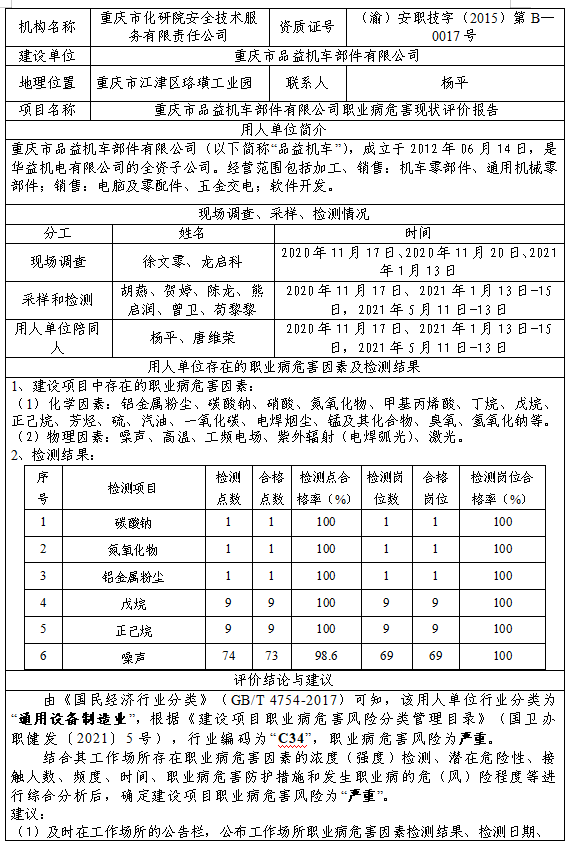 重庆市品益机车部件有限公司职业病危害现状评价报告