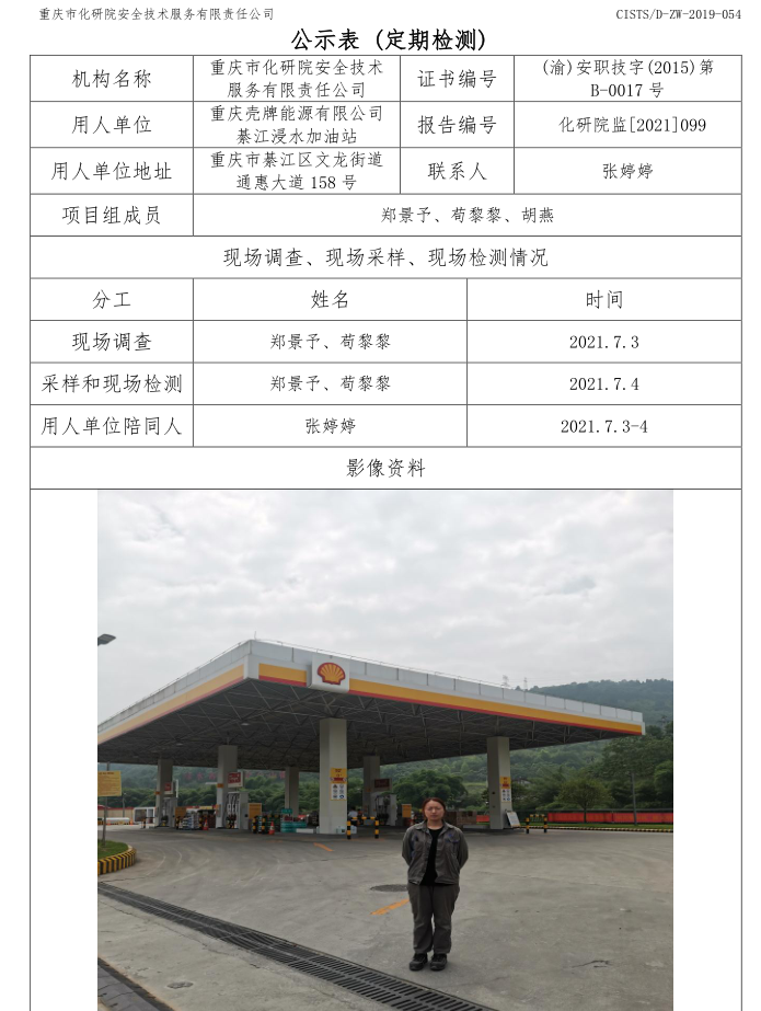 重庆壳牌能源有限公司綦江浸水加油站定期检测