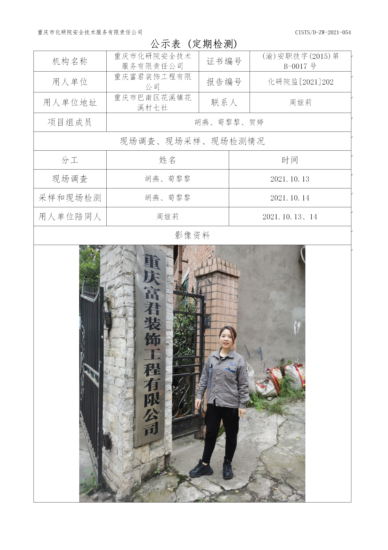重庆富君装饰工程有限公司定期检测