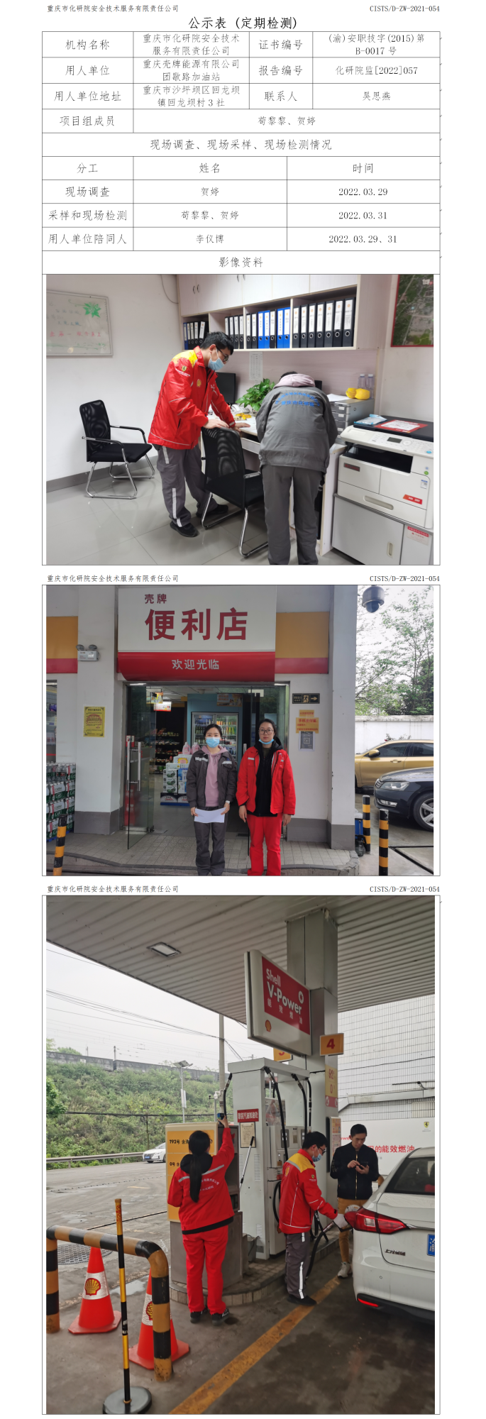 定期检测公示-重庆壳牌能源有限公司团歇路加油站