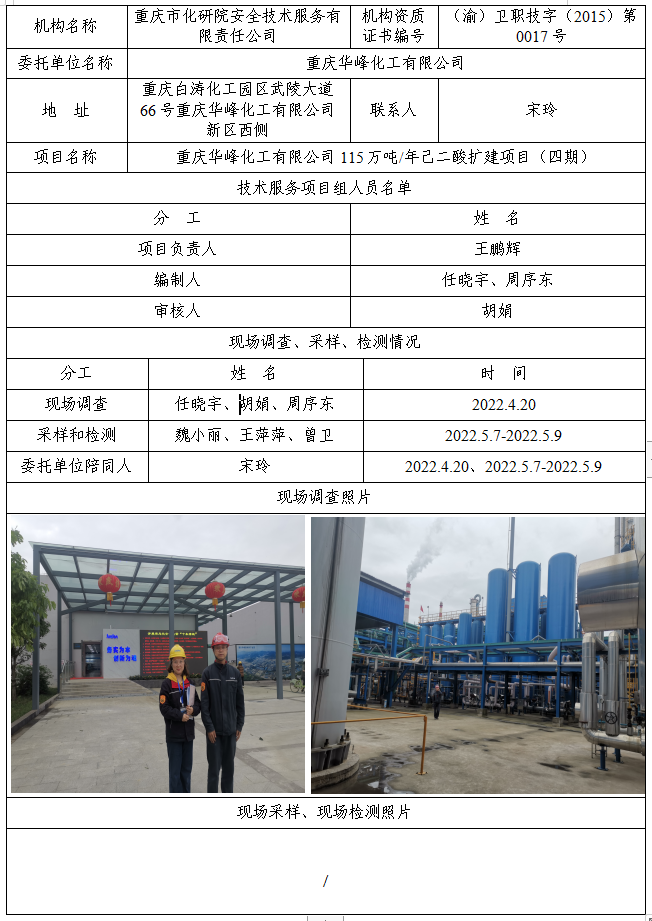 控评公示-重庆华峰化工有限公司115万吨年己二酸扩建项目(四期)职业病危害控制效果评价