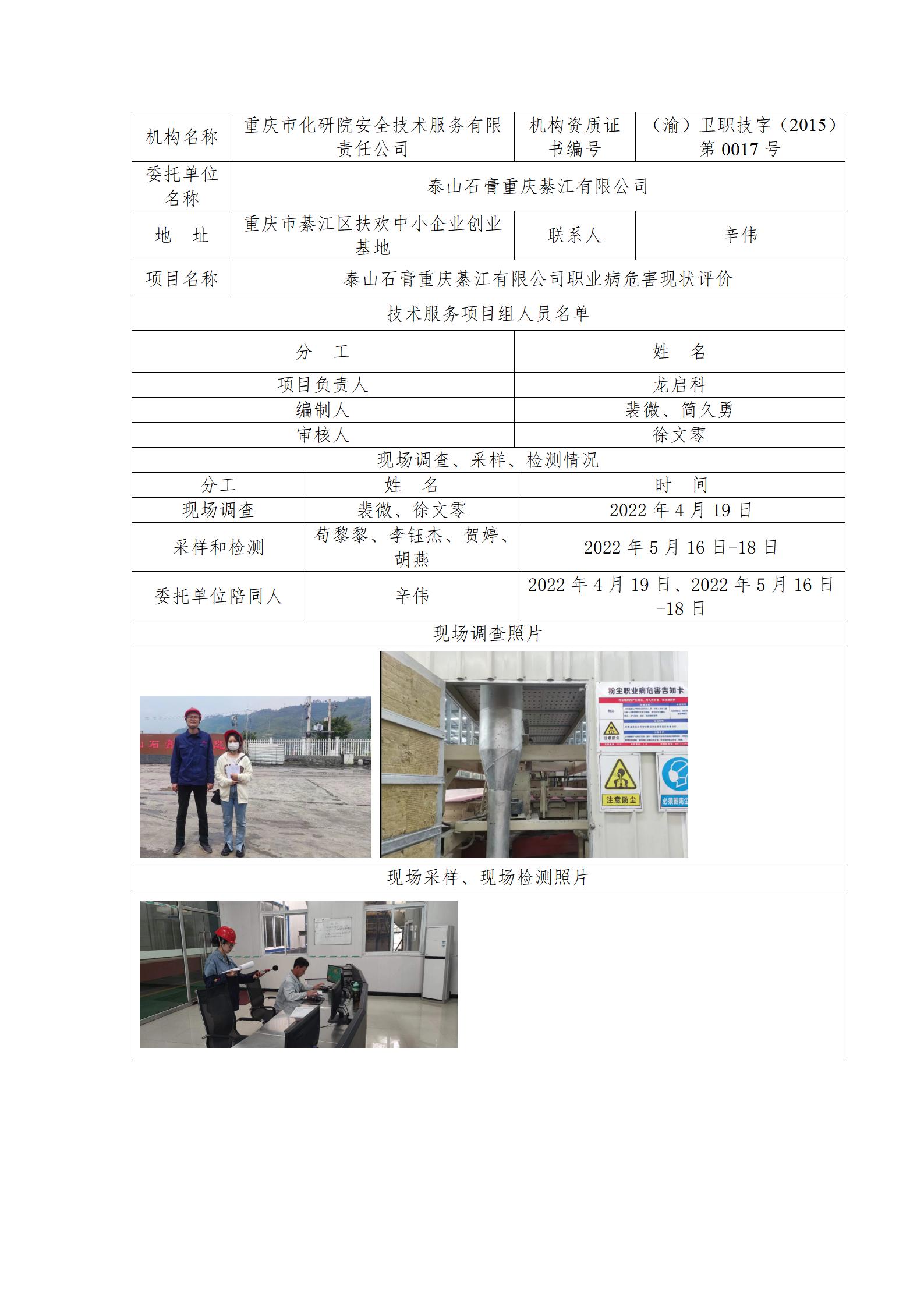 现状评价公示表-泰山石膏重庆綦江有限公司职业病危害
