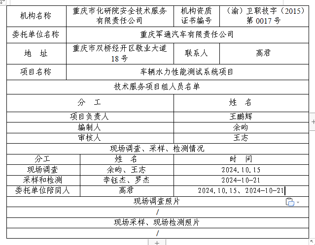 重庆军通汽车有限责任公司车辆水力性能测试系统项目