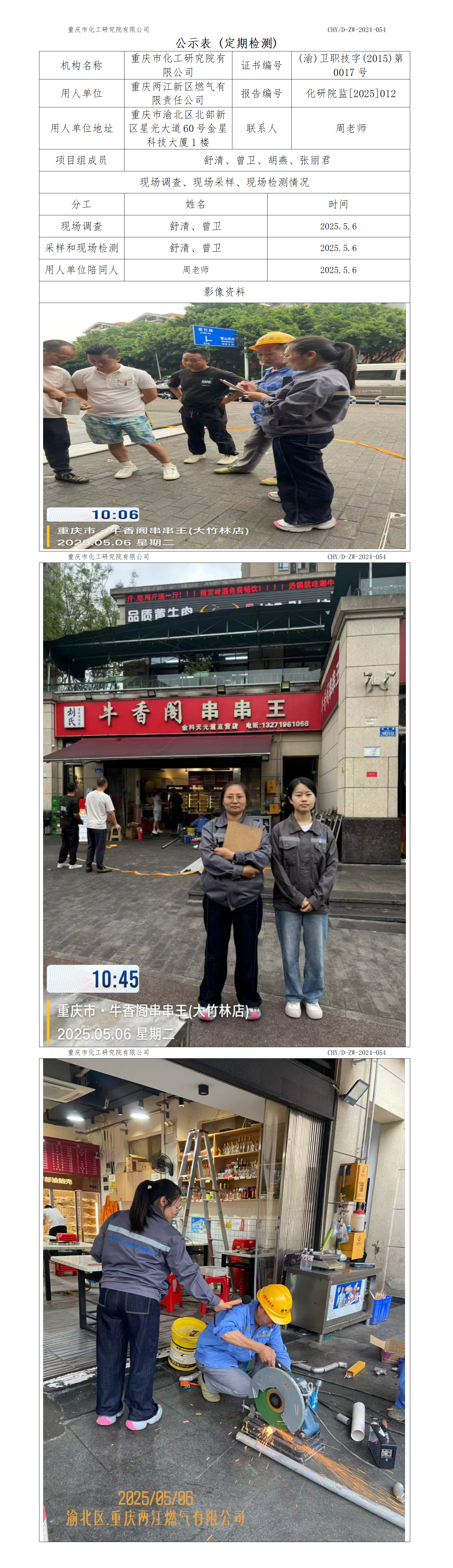 重庆两江新区燃气有限责任公司定期检测