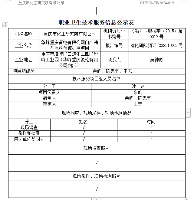 重庆市化工研究院有限公司成立于 1958 年,是国家最早定点从事天然气化工技术研发与精细化工新技术、新产品研发的科研机构和中间试验基地,长期从事特殊功能单体及聚合物的开发和生产。