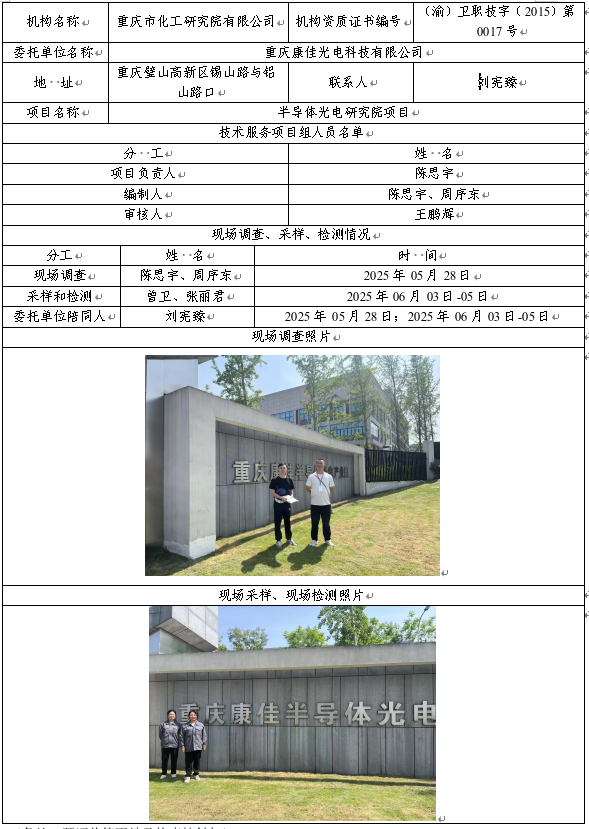 重庆康佳光电科技有限公司半导体光电研究院项目职业病危害控制评价
