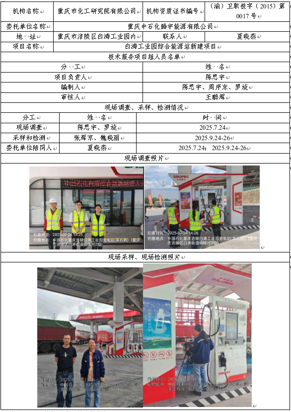 重庆中石化腾宇能源有限公司白涛工业园综合能源站新建项目职业病危害控制评价